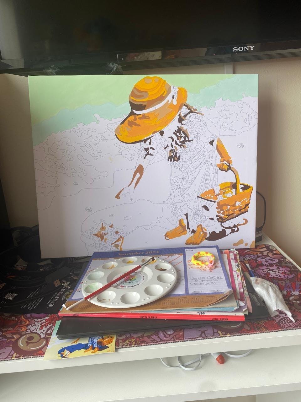 El proceso de pintar fue muy relajante y entretenido, ideal para desconectarse y disfrutar del tiempo libre. Las áreas numeradas están claras, lo que hace que sea fácil de seguir incluso si no se tiene mucha experiencia pintando. Poco a poco se ve cómo el cuadro cobra vida, y eso motiva muchísimo a terminarlo.
