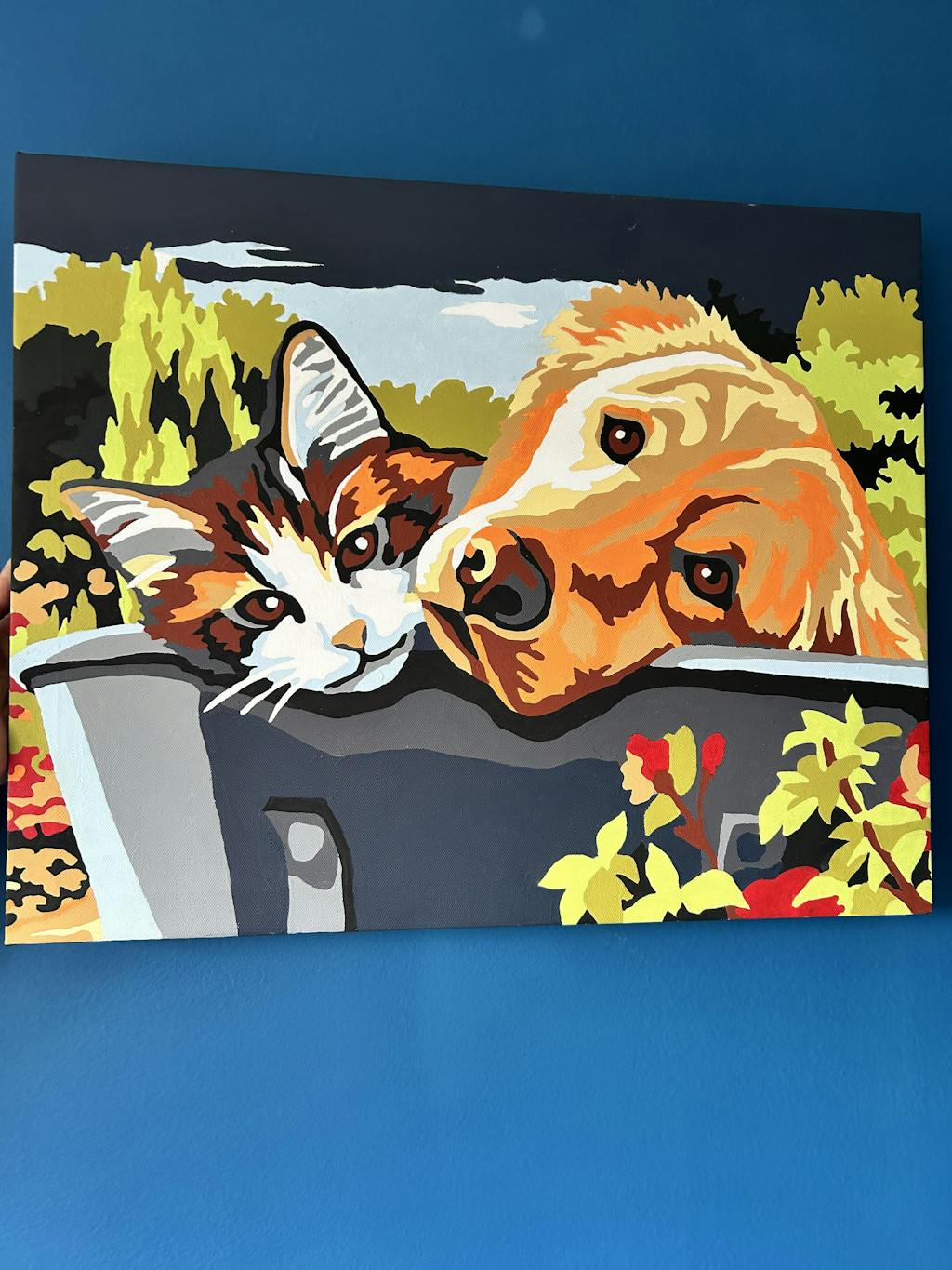 Mi mama está sufriendo de un problema cognitivo, una forma de hacer que su mente esté activa es la pintura, comencé con unos de Panamericana pero no le gustaron porque los números son muy pequeños, llegar a Punta un Lienzo fue lo mejor, los cuadros son hermosos, los números muy claros y mi mamá está feliz, pintar es algo que siempre quiso hacer.